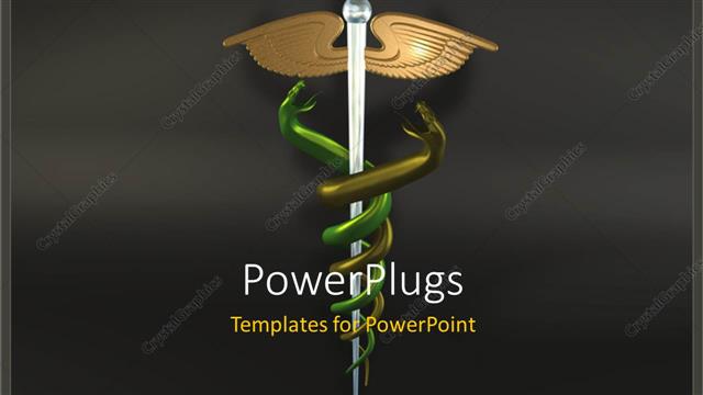 Featuring Symbol of Caduceus with two Hanging green Snakes on Black Background PowerPoint