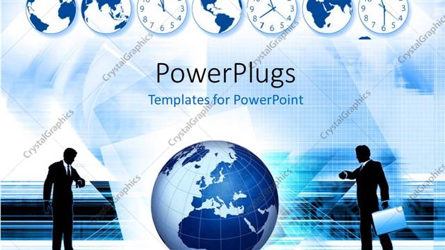 Featuring a Globe with Two Businessmen and Clocks in Background PowerPoint