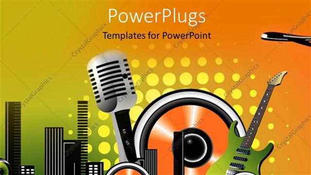 Featuring abstract Music Depiction with Speakers Equalizer and Musical Instruments PowerPoint
