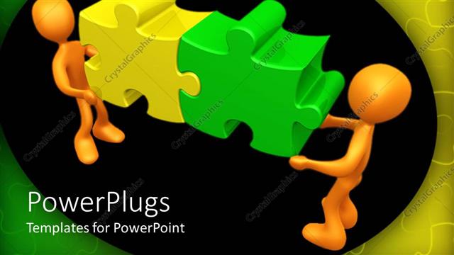 Featuring Two Orange 3D Men Solving Puzzle on Black Background PowerPoint