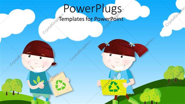 Featuring Two Cartoon Character Chidren holding Recycle Signs and Smiling PowerPoint