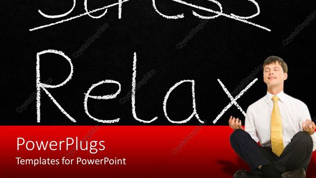 Featuring Man in Suit in Meditation Pose with Stress Crossed Out in Background PowerPoint