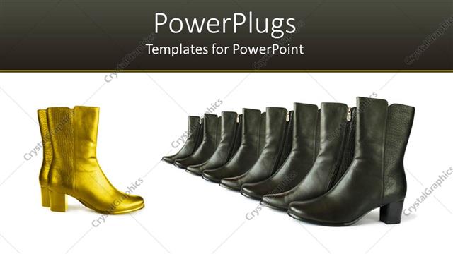 Featuring Black Boots Arranged with Golden Boot on White and Black Background PowerPoint