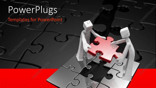 Featuring Teamwork as two 3D Men Place Jigsaw Piece in Correct Position PowerPoint