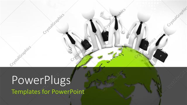 Featuring Business Team on Top of the 3D Globe with World Map in the Background PowerPoint