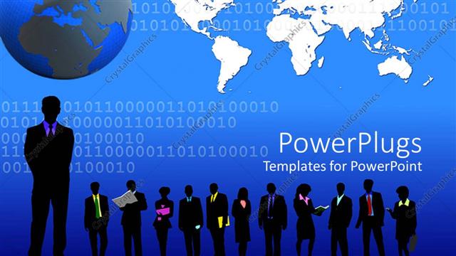 This presentation template includes a background image with a number of people with one being highlighted