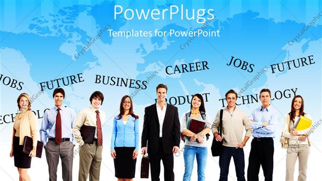 Featuring Nine Business People Smiling with some Texts Behind them PowerPoint