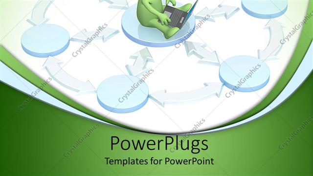 Featuring 3D Figure Holdin Laptop on Lap Sitting Inside a Round Diagram PowerPoint