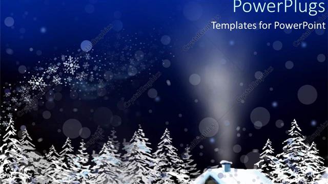 Featuring Beautiful Christmas Depiction with snow fall on house and Christmas Trees PowerPoint