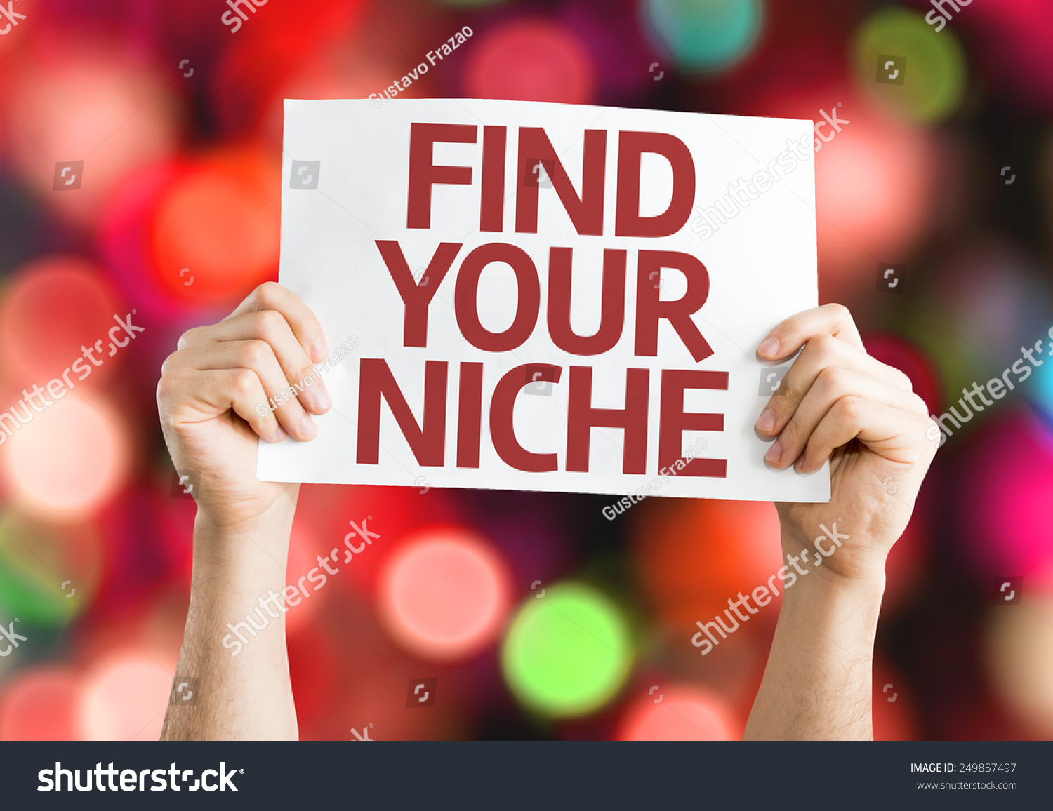 Red Resting Curve Template Design Featuring Find your Niche Card with Colorful with Defocused Slide Set