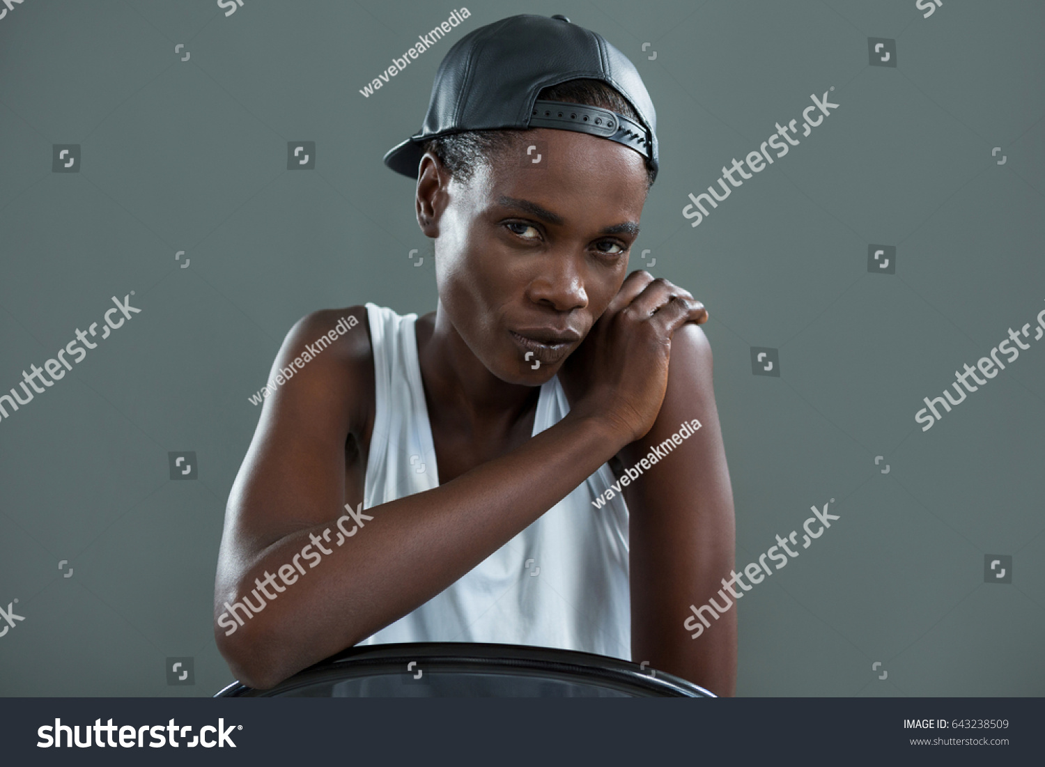 Gray Classic Template Design Featuring Androgynous Man in Cap Looking at Camera PowerPoint